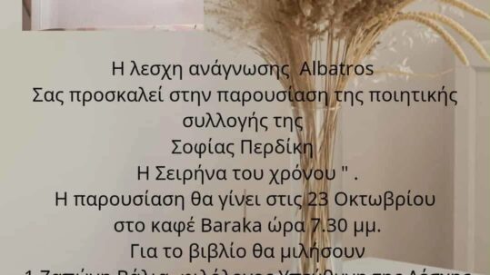 Τη Δευτέρα 24 Φεβρουαρίου στο καφέ Ζώγια θα γίνει η παρουσίαση της ποιητικής συλλογής “Η σειρήνα του χρόνου” της Σοφίας Περδίκη που είναι μέλος της ΕΛΘ....
